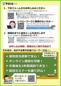 おかやま新卒応援ハローワークからの予約完了メールをもって予約確定します。
