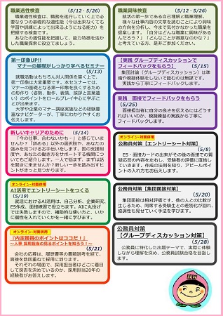 書類選考対策・面接対策セミナー、内定者向けセミナーを実施予定です。