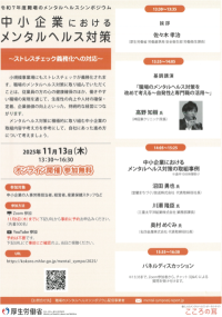 ▶令和7年度職場のメンタルヘルスシンポジウム~中小企業におけるメンタルヘルス対策~を開催します(令和7年11月13日)