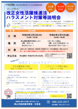 ▶改正法説明会(カスハラ、就活セクハラ、女性活躍等)開催のお知らせ