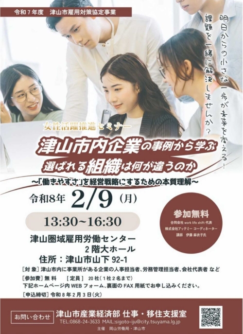 【イベント情報】2月9日開催 女性活躍推進セミナー(令和7年度津山市雇用対策協定事業)
