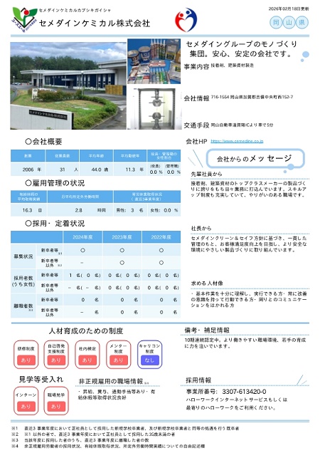 - ユースエール認定企業「セメダインケミカル株式会社」