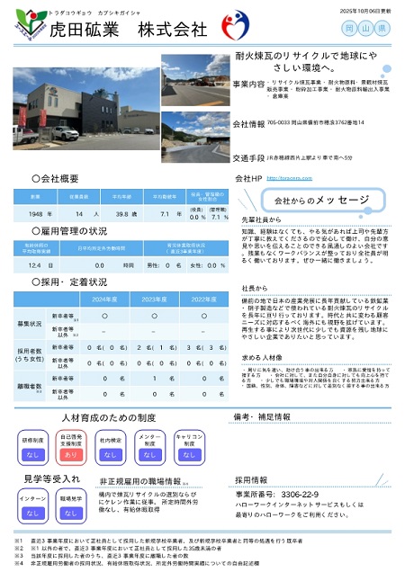 備前市で、耐火煉瓦のリサイクル及び加工販売を行っている企業です。再生する事により次世代に少しでも資源を残し地球に優しく、地域の発展に尽力します。