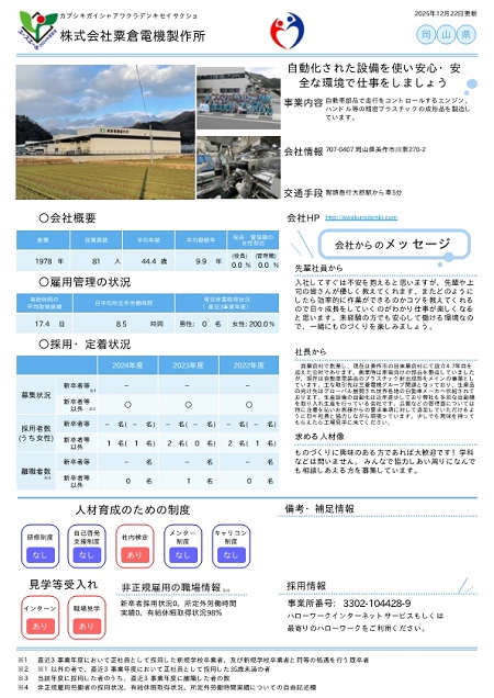 - ユースエール認定企業「株式会社粟倉電機製作所」