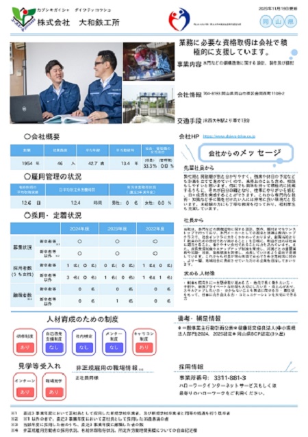 - ユースエール認定企業「株式会社 大和鉄工所」