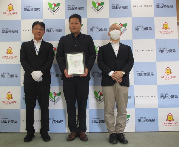 左から赤木 伸二 所長、代表取締役 三宅 正浩 氏、大野 浩司 岡山労働局職業安定部長