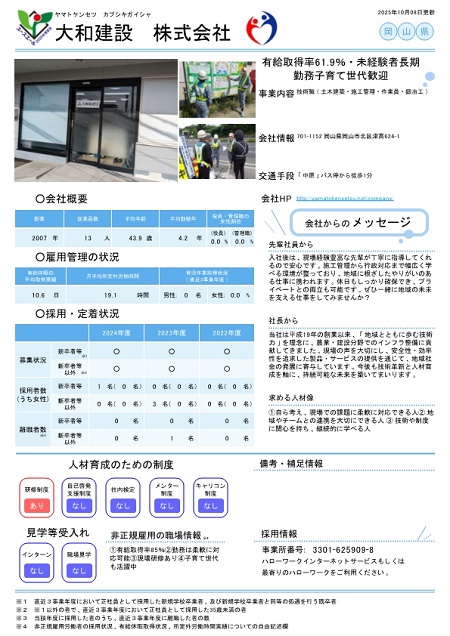 - ユースエール認定企業「大和建設 株式会社」
