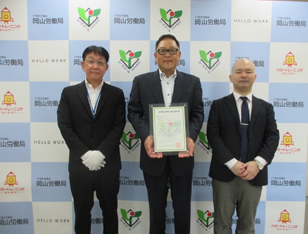 左から赤木 伸二所長、代表取締役 片山 博文 氏、大野 浩司 岡山労働局職業安定部長