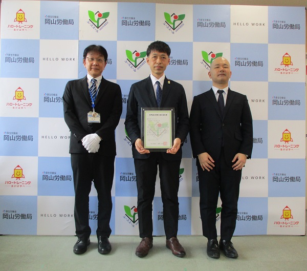 左から 赤木 伸二 所長、専務取締役 黒住 仁志 氏、大野浩司 岡山労働局職業安定部長、