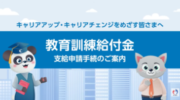 | 教育訓練給付制度とは、労働者の主体的な スキルアップを支援するため、厚生労働大臣 の指定を受けた教育訓練を受講・修了した方 に対し、その費用の一部が支給される制度です。 |