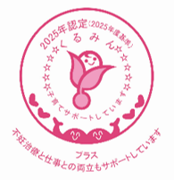 | くるみん認定基準を満たしたうえで、不妊治療を受けながら安心して働き続けられる職場づくりに取り組んだ「不妊治療サポート企業」として認定された企業です。 | |