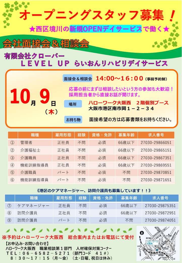 10月9日(木) 面接会&相談会 14:00~16:00(事前予約制)