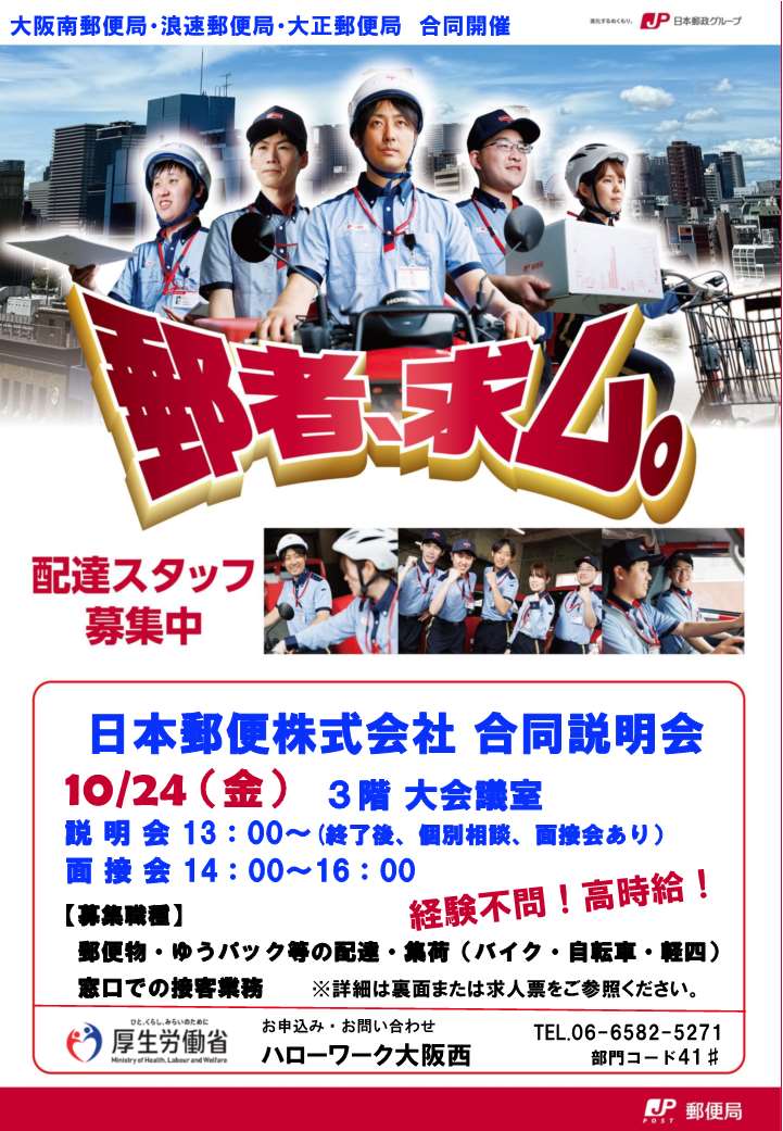 ②窓口業務(契約社員・年齢不問)大阪南郵便局
