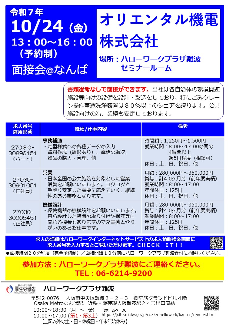 就職面接会 14:10~16:30〈事前予約優先制・最終受付16:00〉