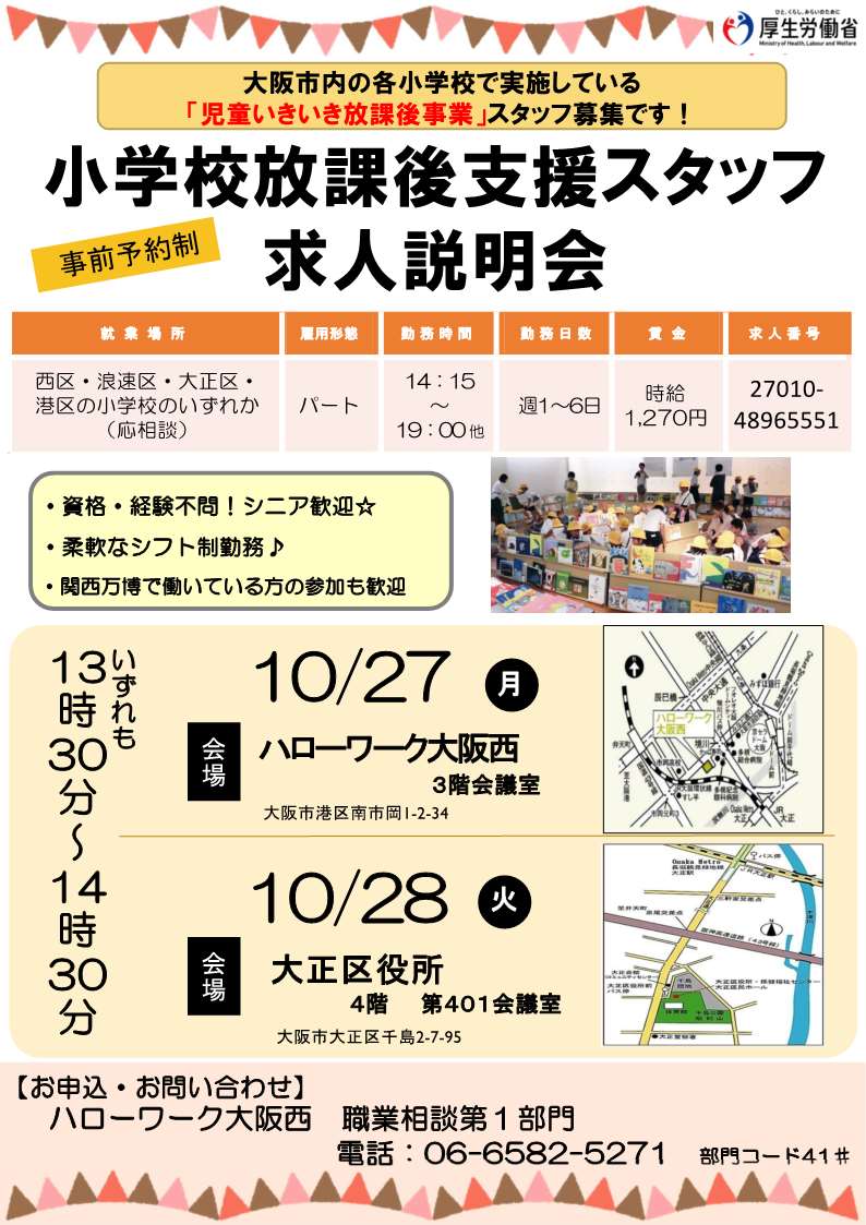 ・大阪市西区・浪速区・大正区・港区のいずれかの小学校での勤務となります。
