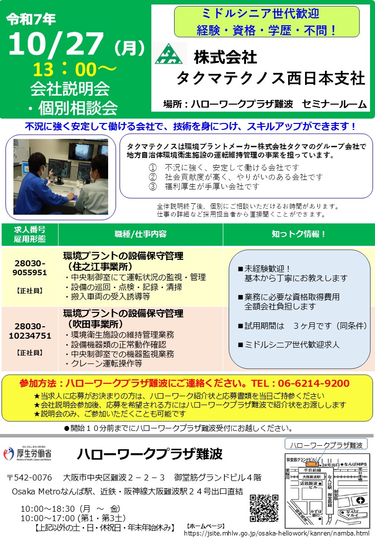 株式会社タクマテクノス西日本支社 会社説明会・個別相談会