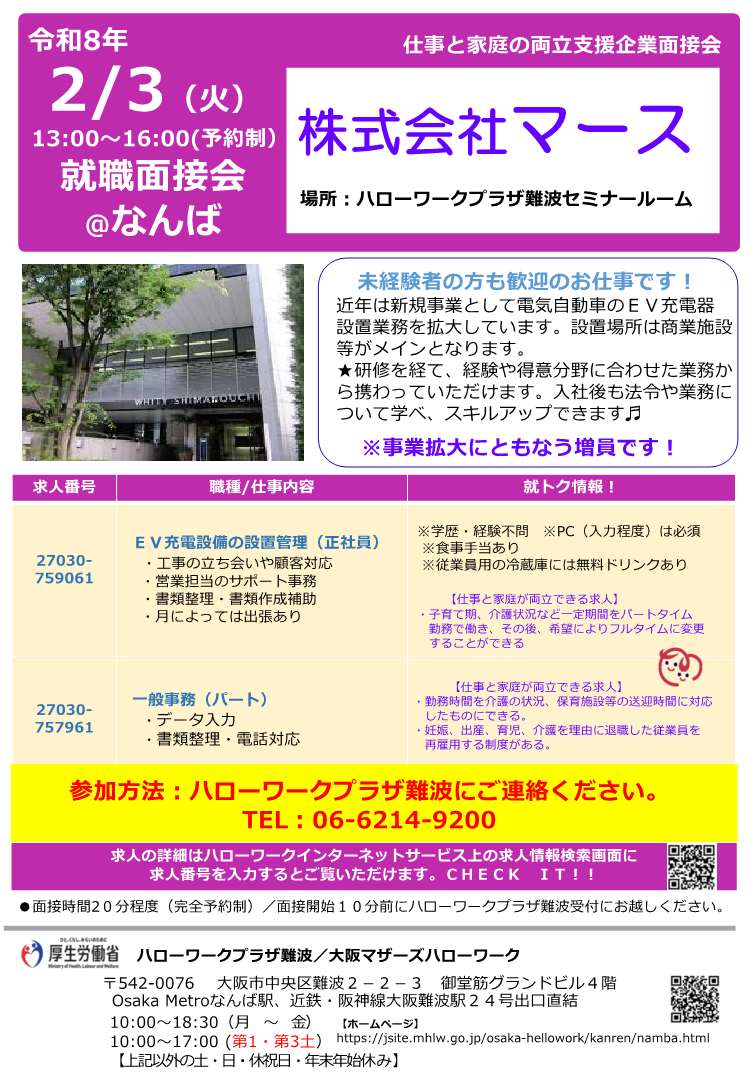 詳細はコチラ(ハローワークプラザ難波HP)