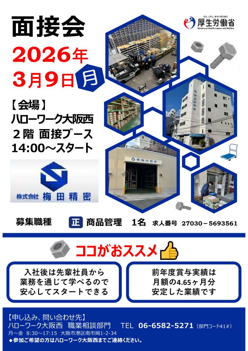 3月9日(月) 面接会 14:00~16:00 〈事前予約制〉