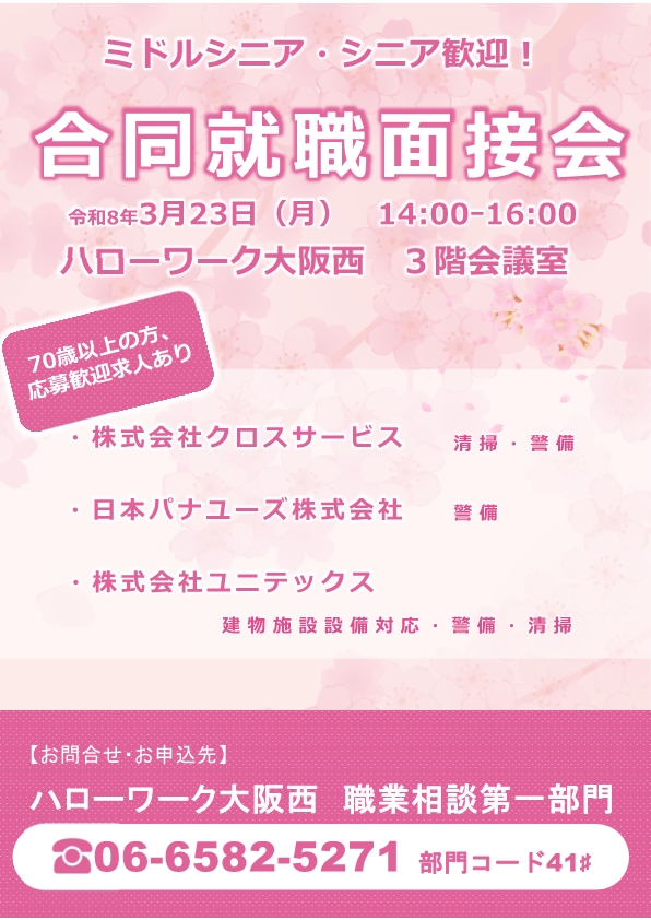 3月23日(月) 面接会 14:00~16:00 〈事前予約制〉