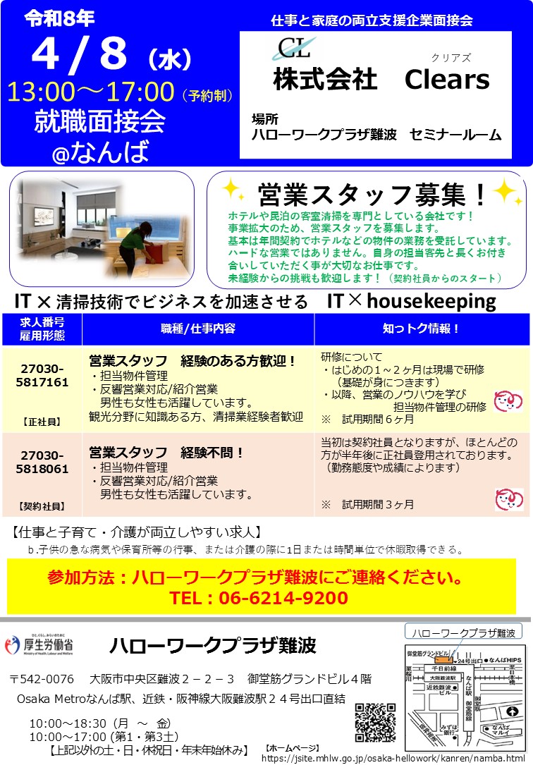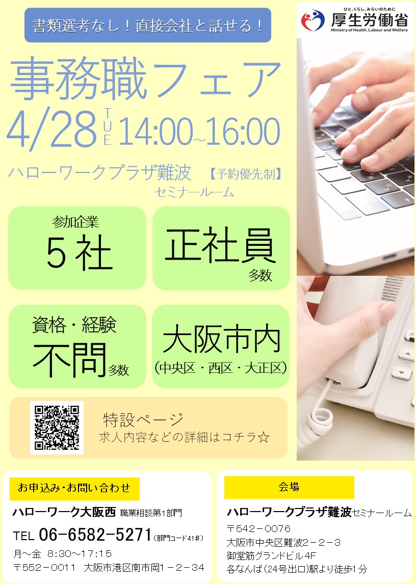 お仕事探し専門のハローワークプラザ難波でも様々なサービスを実施中★