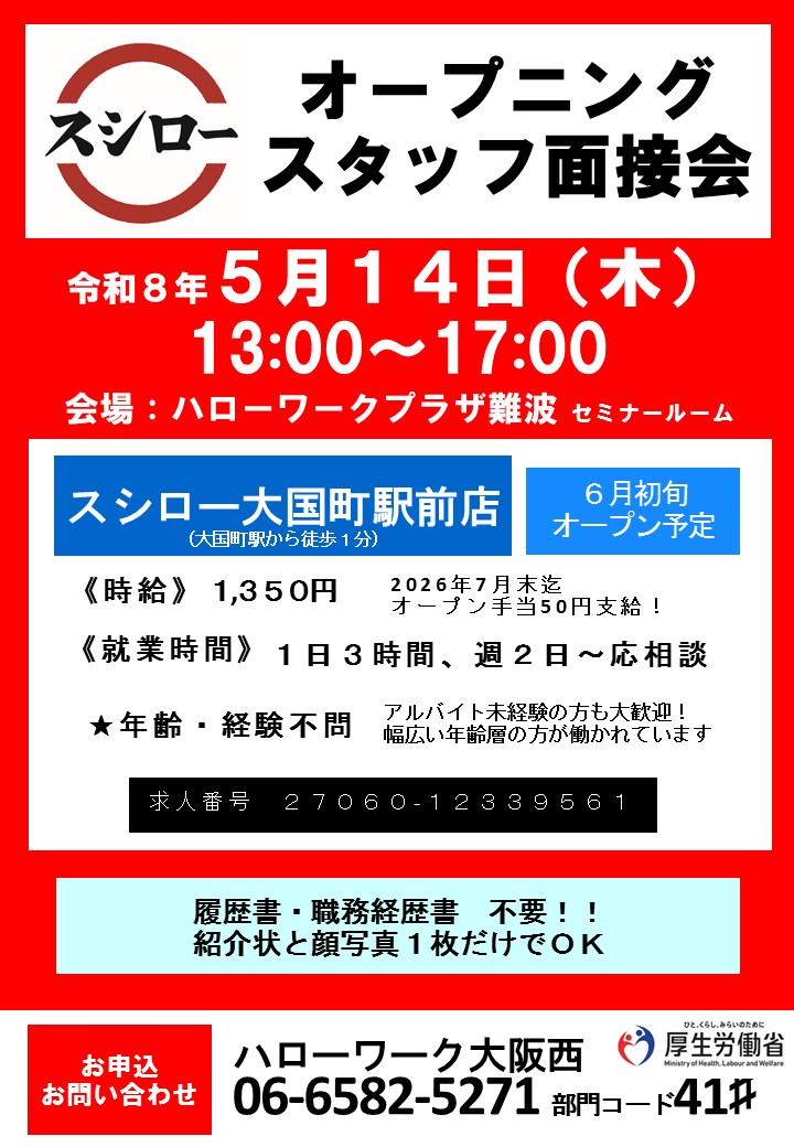 株式会社あきんどスシロー オープニングスタッフ面接会@なんば