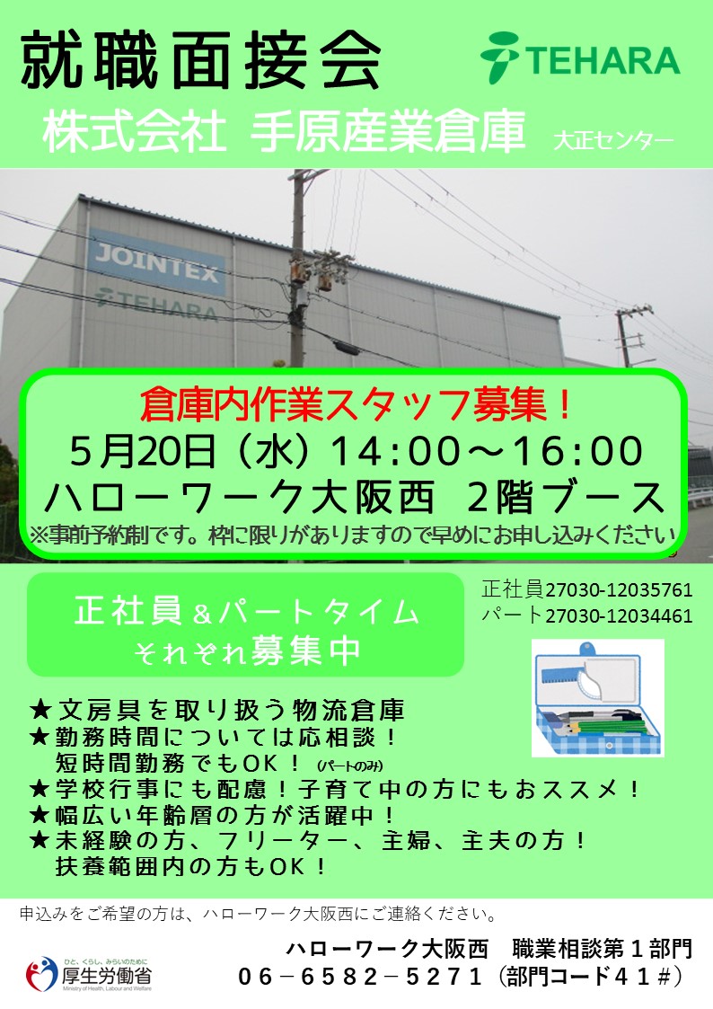 5月14日(木) 面接会 14:00~16:00 ※いずれも事前予約制