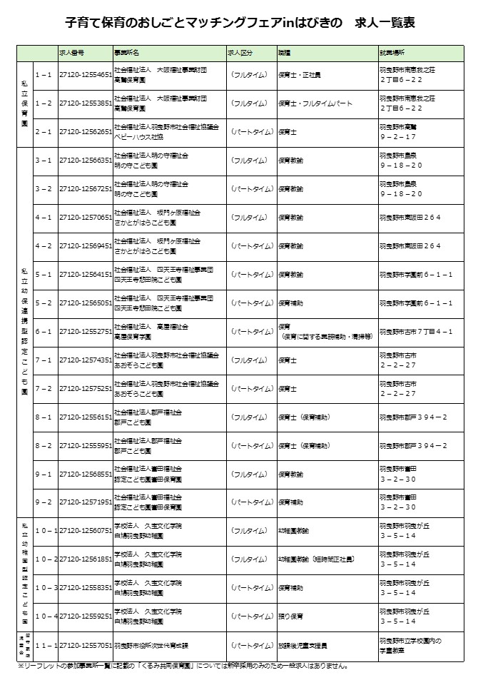 子育て保育のおしごとマッチングフェアinはびきの【LICはびきの】