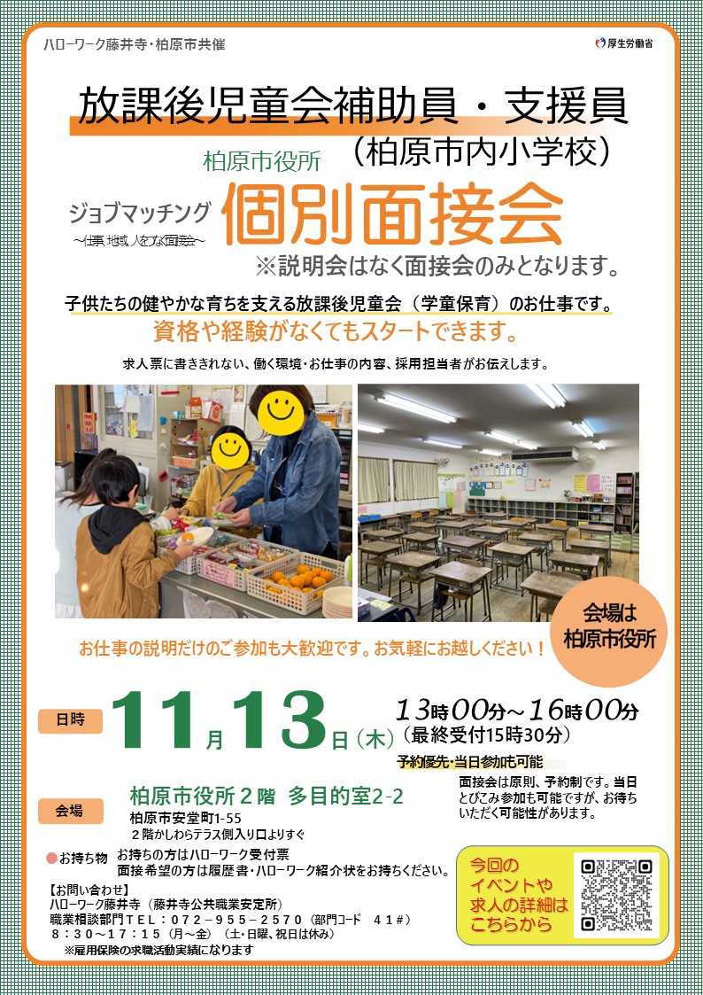 柏原市役所 放課後児童会補助員・支援員 面接会
