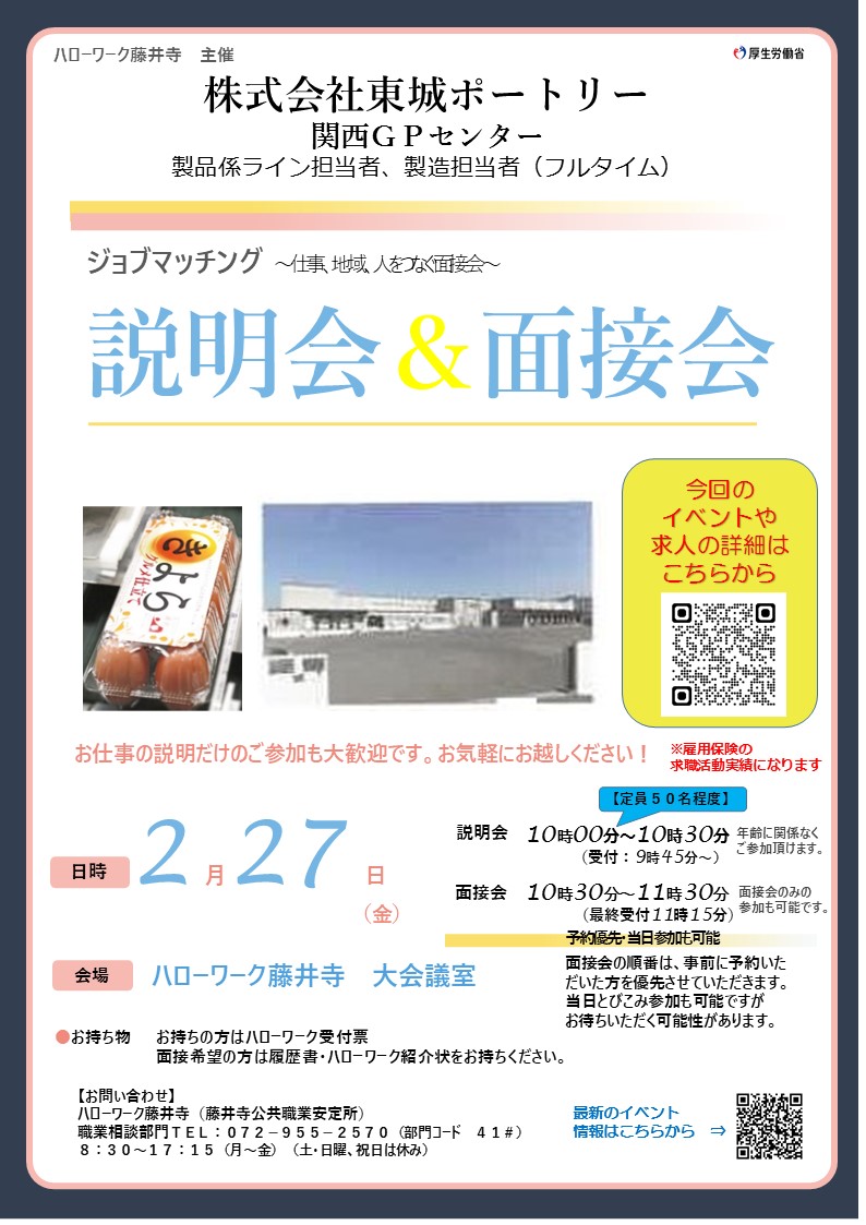 (株) 東城ポートリー関西GPセンター 説明会・面接会
