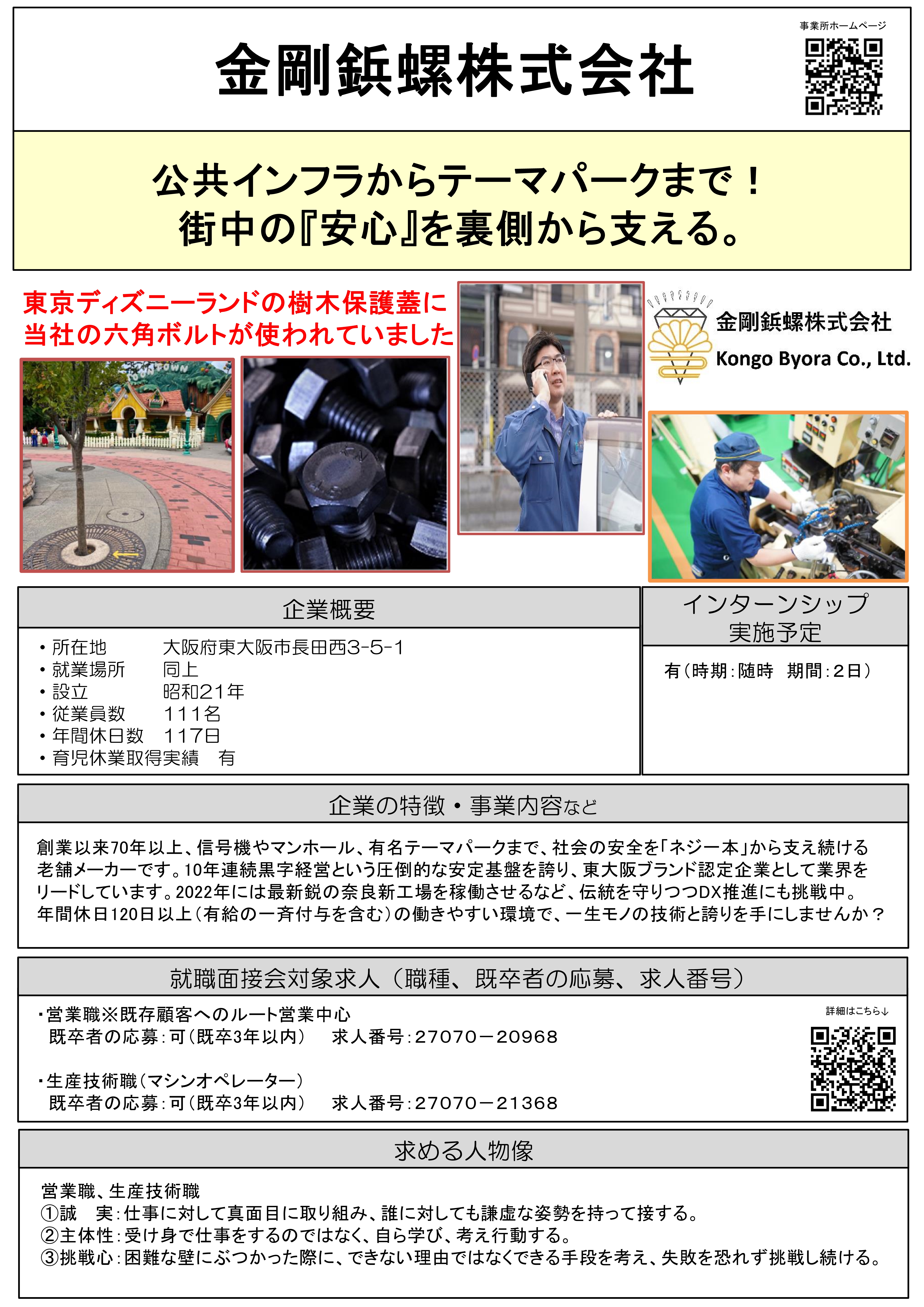 3Steps就活フェア「金剛鋲螺 株式会社」