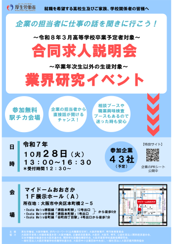 令和8年3月高等学校卒業予定者対象合同求人説明及び卒業年次生以外の生徒を対象とした業界研究イベント