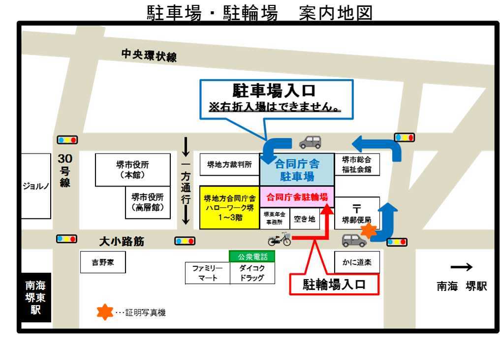 ※お車・自転車でお越しの方へ→堺地方合同庁舎駐車場・駐輪場のご案内はこちら