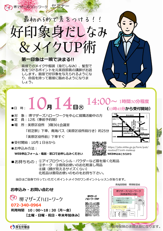 - 堺マザーズハローワークを中心に就職活動中のかた 定員:12名(予約制)