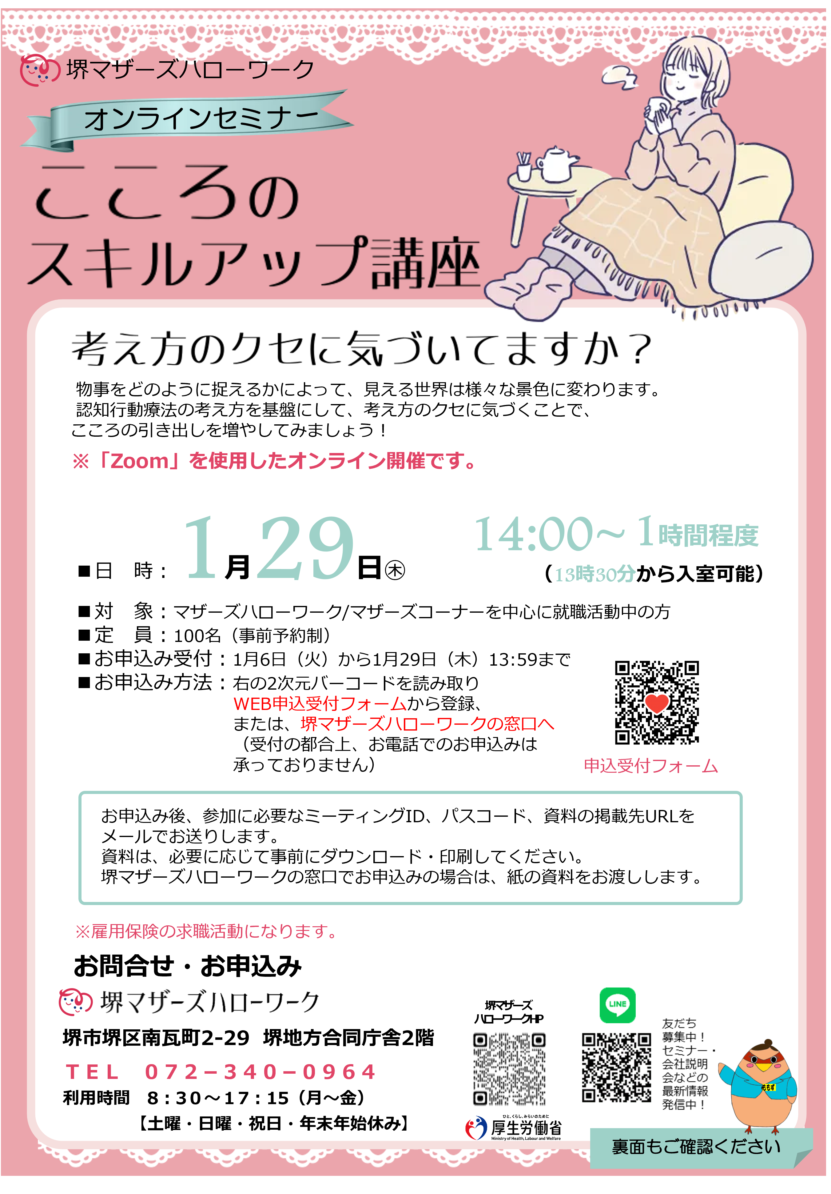 - WEB受付(ページ下の方にフォームへのボタンがあります)・堺マザーズハローワークの窓口でお申込み
