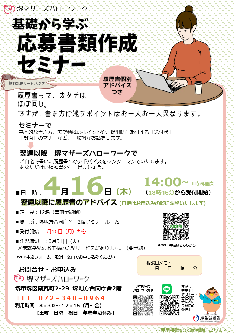 - 2026年(令和8年)4月16日木曜日14:00~15:00 【履歴書個別アドバイス】翌週以降の日程で、お申込みの際調整させていただきます。