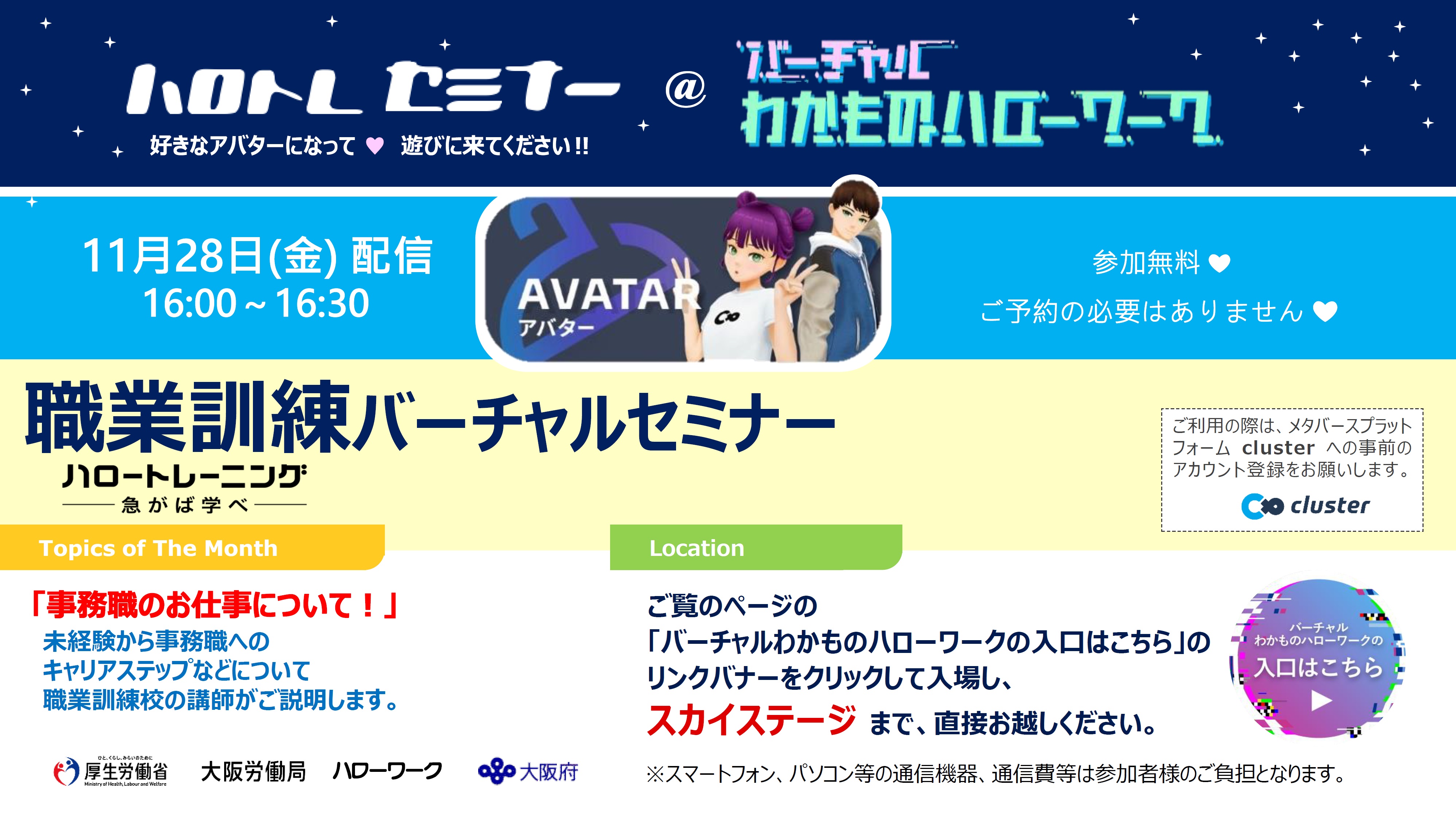 バーチャルわかものハローワーク内でアバター同士が、テキストや音声でチャットによる交流ができます。トークテーマルーレットもあります。