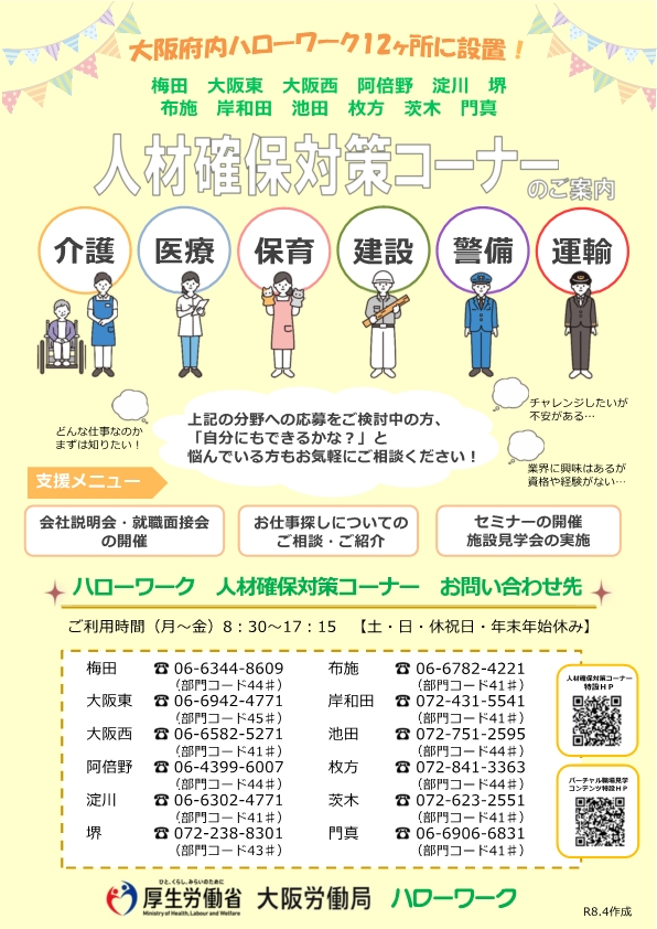 ▼人材確保対策コーナー設置ハローワーク一覧▼