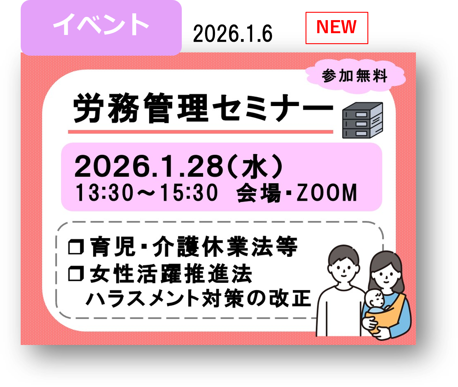 また、労働局のSNS、ホームページでのイベント情報の発信、事業所の詳細情報のハローワーク内での展示も行っております。