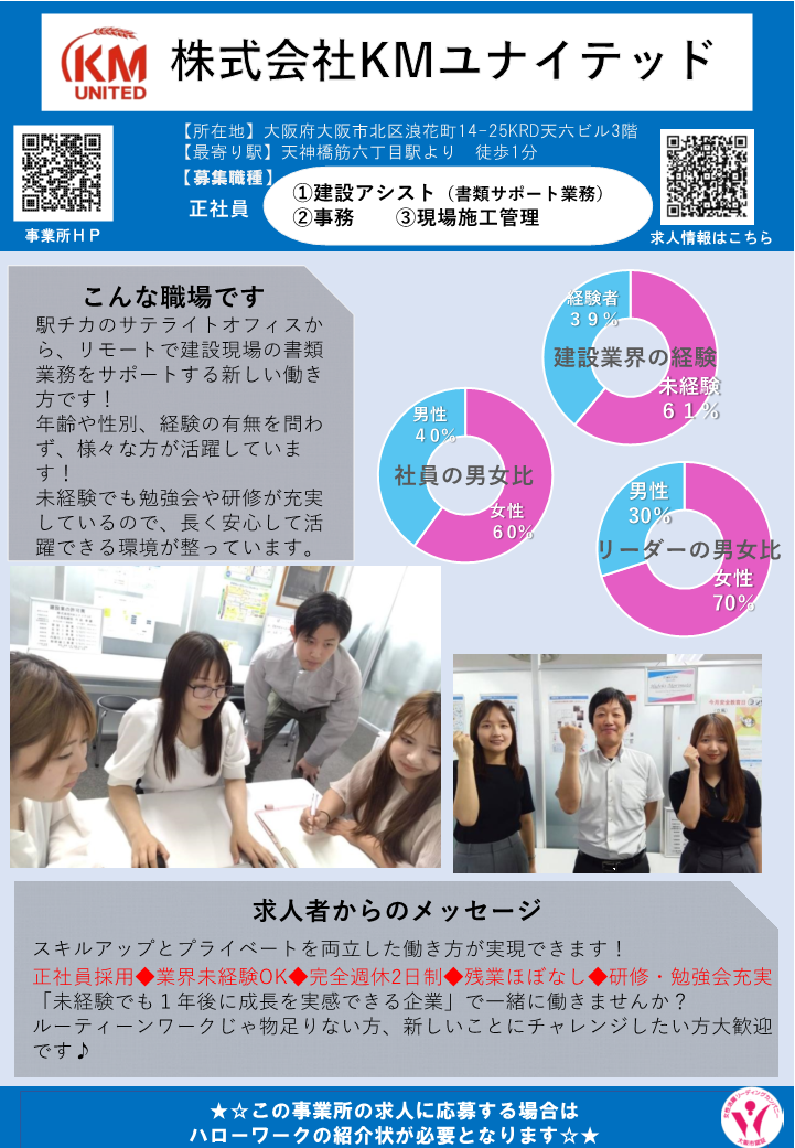 9:30~11:30 | (株)KMユナイテッド | 建設アシスト (書類サポート業務) |