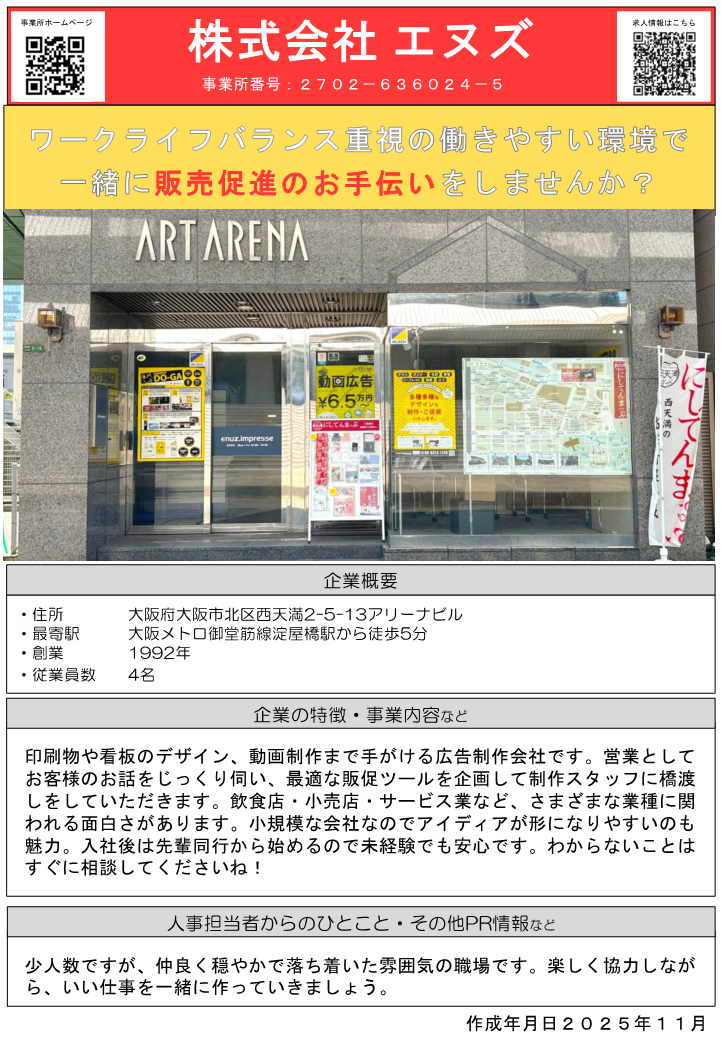 (株)エヌズ | 広告・販促物営業 | 大阪市 北区 |
