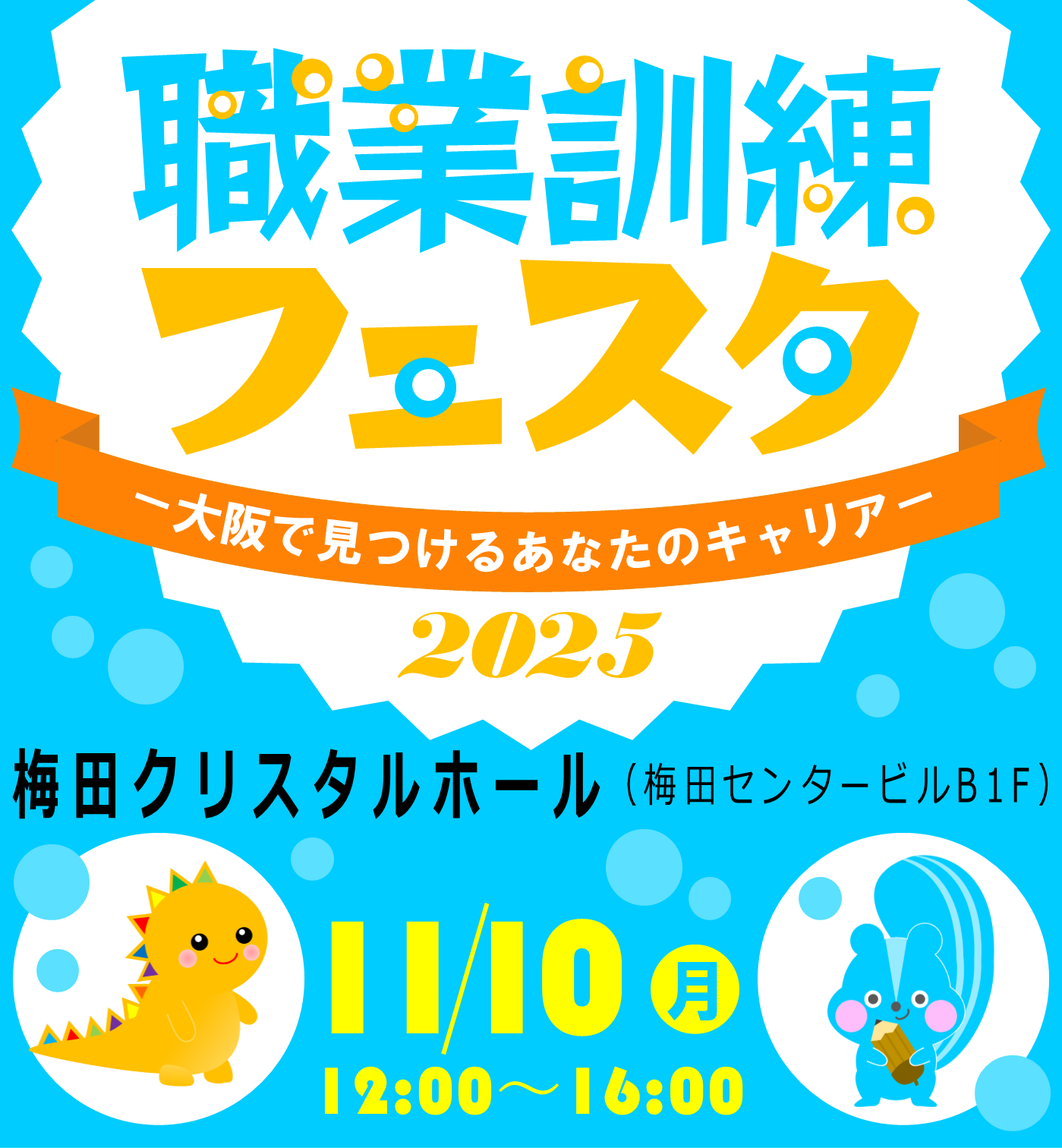 2025/10/8 | 大阪府委託訓練 12月開講の募集がスタートしました!![]() 募集期間 10月8日(水)~11月4日(火) |