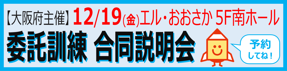 | 2025/12/4 | 大阪府委託訓練 2月開講の募集がスタートしました!![]() 募集期間 12月4日(木)~1月5日(月) |