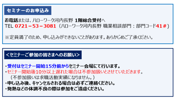 - 就職支援セミナーのお知らせ