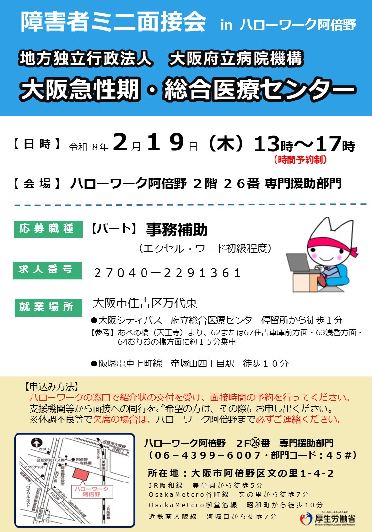 場所:ハローワーク阿倍野 2階26番 専門援助部門