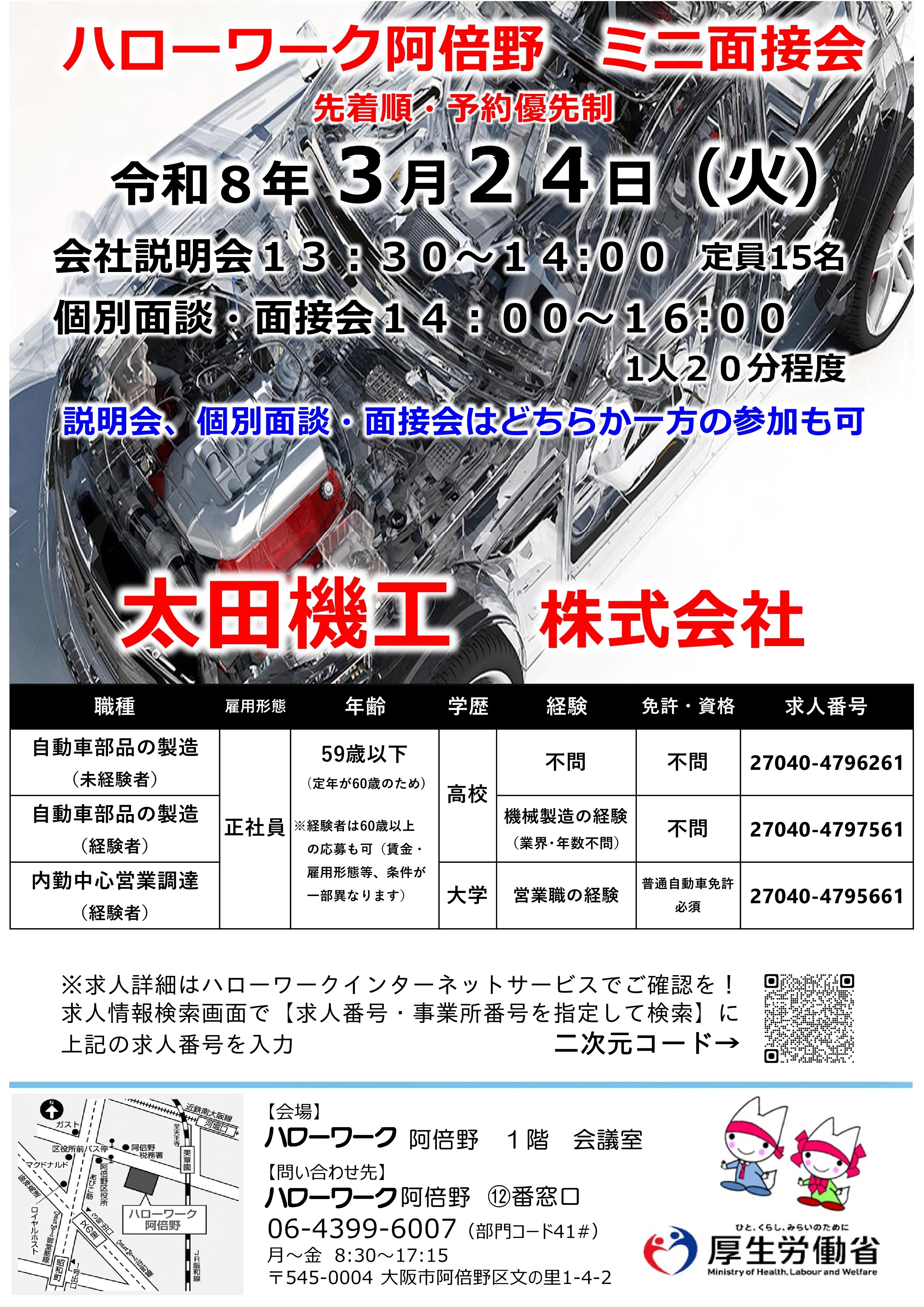 太田機工 株式会社 ミニ面接会の開催のお知らせ