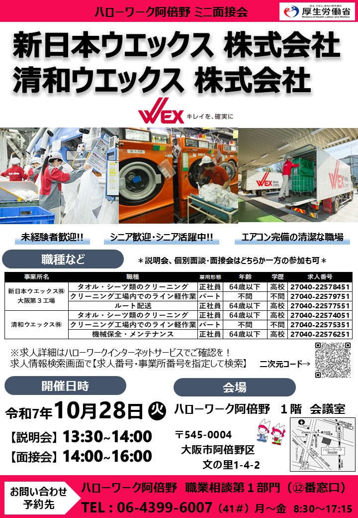 新日本ウエックス株式会社 清和ウエックス株式会社 ミニ面接会 開催のお知らせ