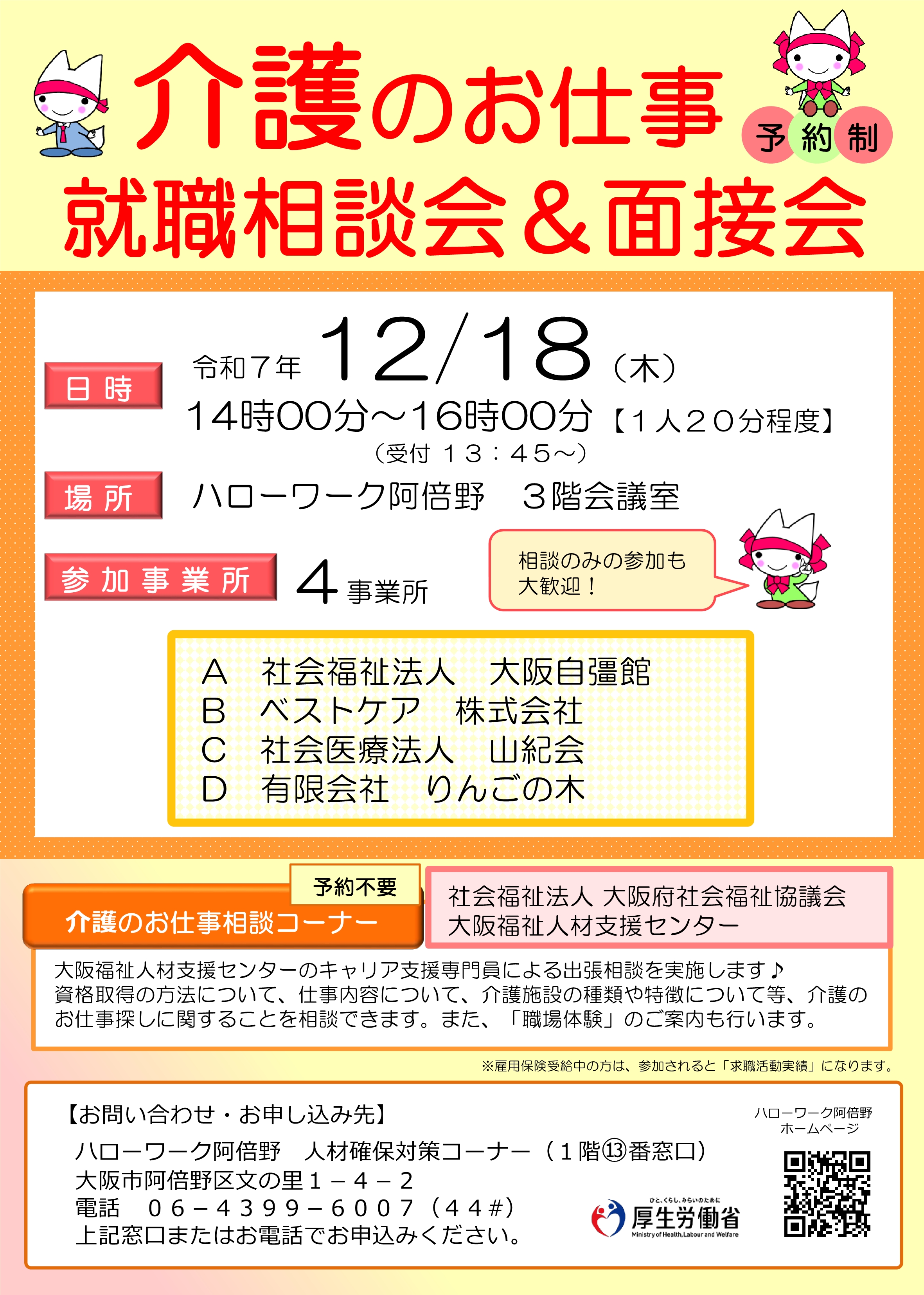 12月18日(木) 介護のお仕事 就職相談会&面接会を開催します!【4事業所参加】