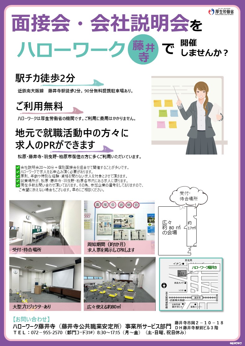 ハローワーク藤井寺で貴社の面接会・説明会を開催しませんか?