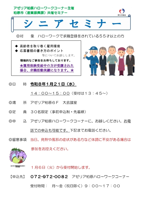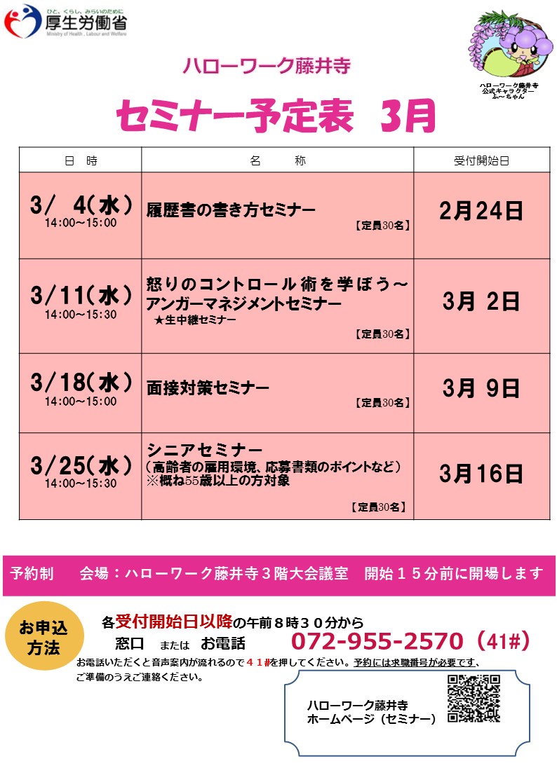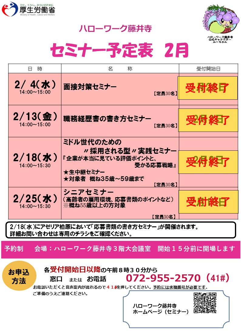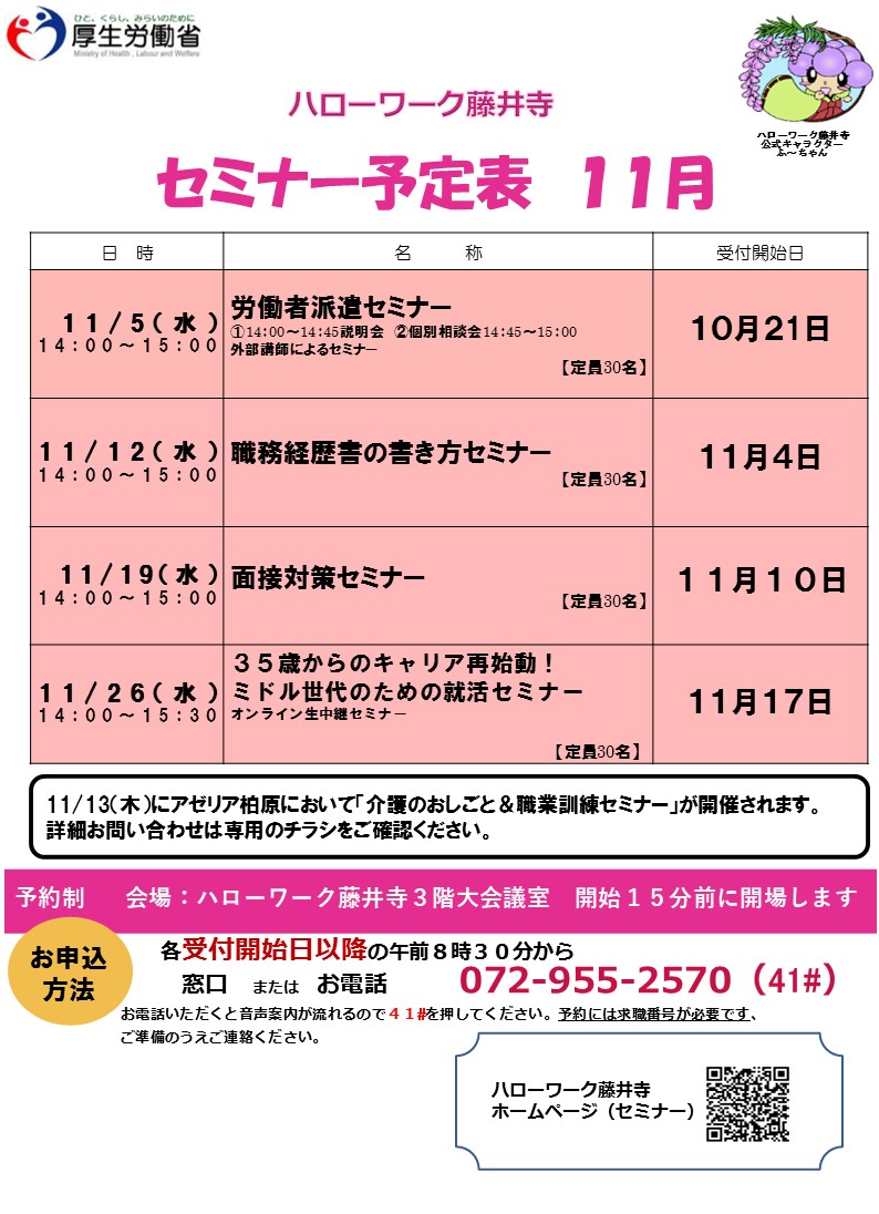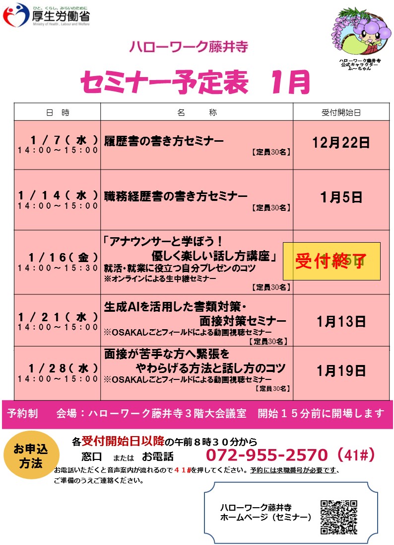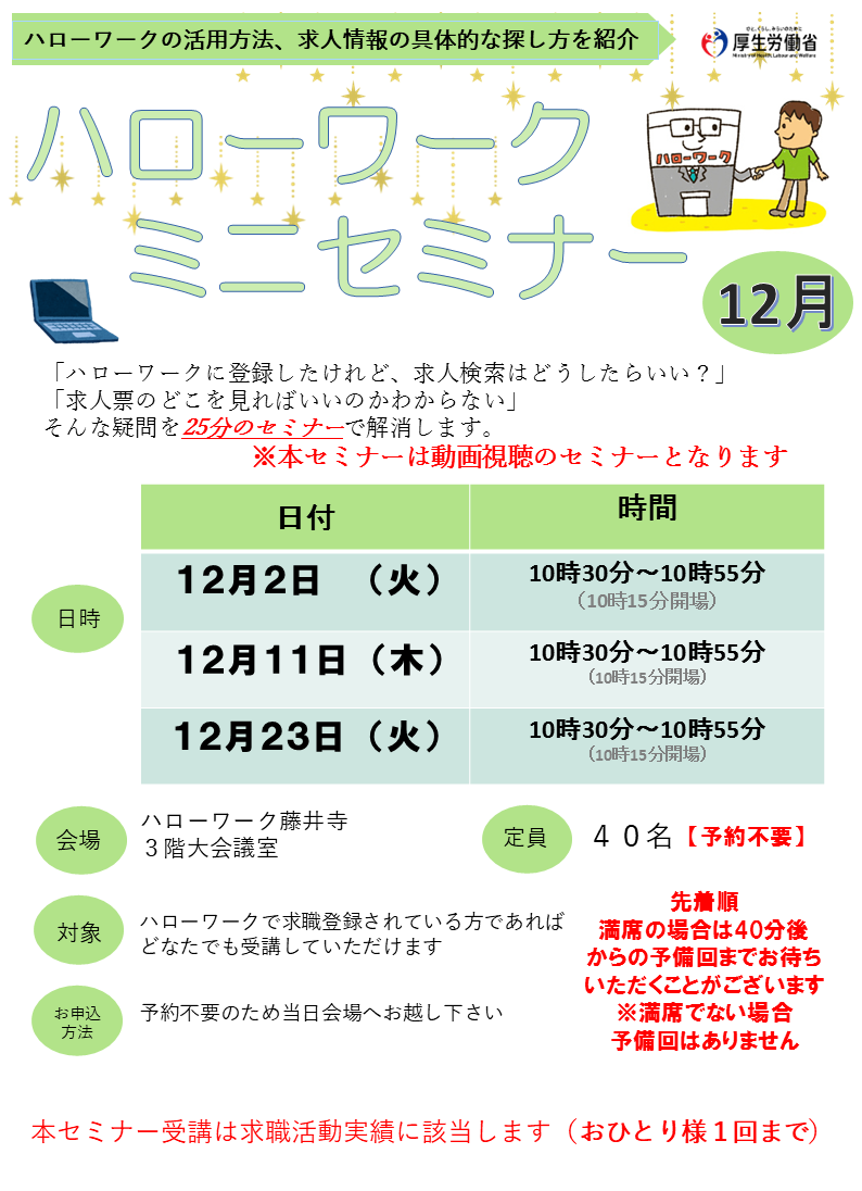 藤井寺所では求職活動に役立つ各種セミナーを実施中!