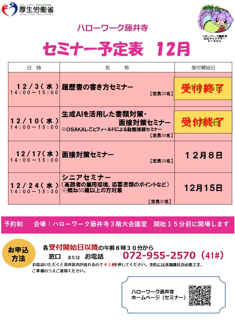 藤井寺所では求職活動に役立つ各種セミナーを実施中!